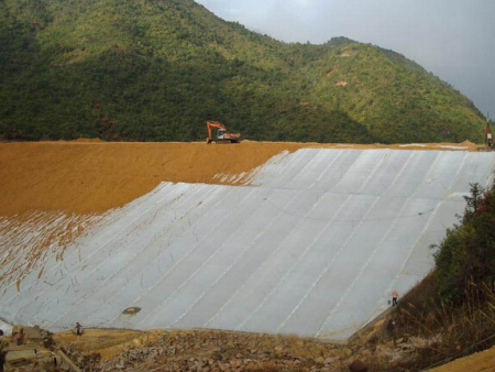 土工布作為土工膜的保護(hù)層,使保護(hù)防滲層不受損壞。為減少紫外線照射,增加抗老化性能, 好采用埋入法鋪設(shè)。